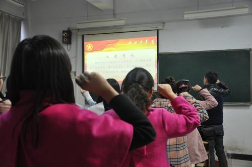 第一是由团支部书记带领班级里的团员共同重温入团的光辉时刻,团员们用青春的激情唱响嘹亮的团歌,在团支书的带领下,团员们进行庄严的宣誓,感受党与国家给予的责任。团员们在此次重温入团活动中重新认识了作为团员所享有的权利与应该承担的义务,更加坚定了紧密团结在以习近平同志为核心的党中央周围的决心。
