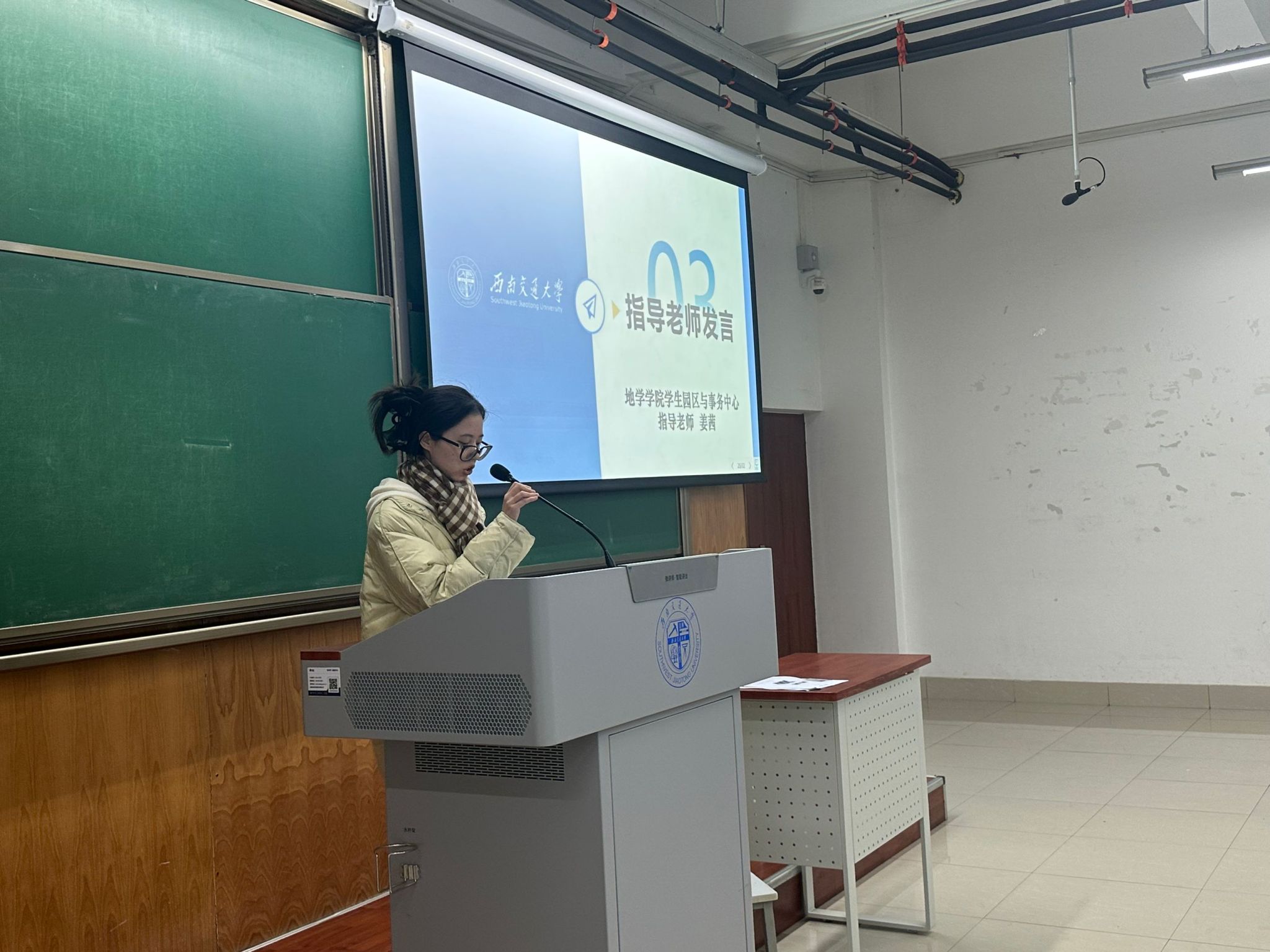学生园区与事务中心指导老师姜茜在发言中强调了学生在权益工作中的核心作用。她鼓励全体学生积极参与校园权益活动,倡导权益提案的审理和落实应保持透明,确保每位同学的权益得到有效维护,为创建一个和谐、公正的校园环境贡献力量。