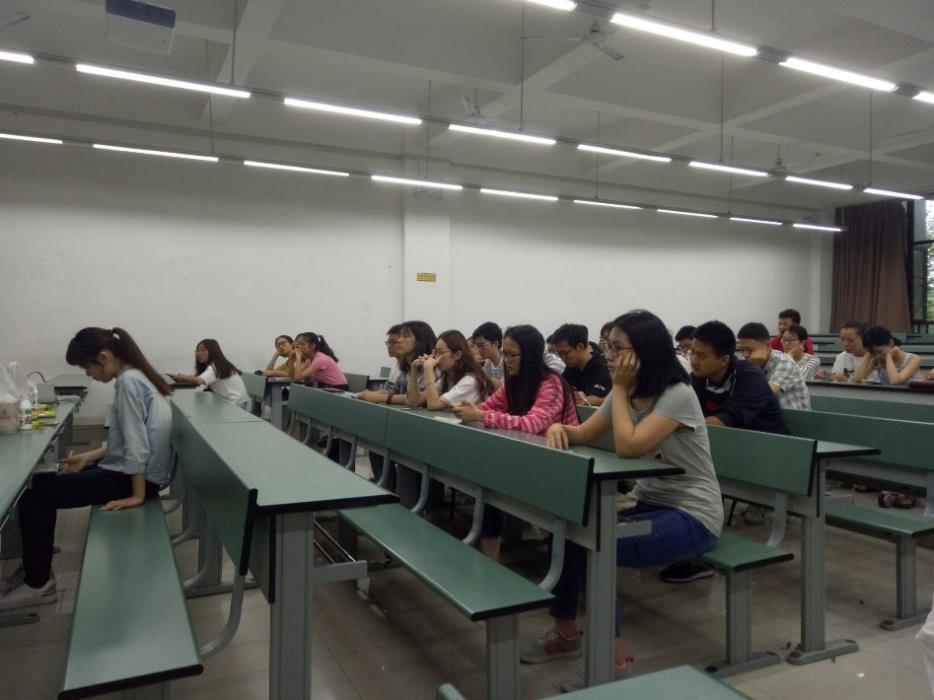 在同学们的掌声中,学姐走上讲台以自身专业为引题开始了她的分享。在介绍完环境专业相关情况之后,她以自己的亲身经历对同学们现在所面临的专业选择问题以及修读双学位的问题进行了深入浅出的分析与讲解,同学们都十分认真听讲时而抬头凝视,时而低头思考进行记录。学姐在和大家分享的时候提到的最多的两个词是“累”和“坚持”,她说:“在通往成功和未来的路上大多数都会走的很累很艰难,但最后能够成功的往往即使那些能够咬牙坚持下来的人!”听到这里同学们向她报以了热烈的掌声,同时学姐也结束了她的讲话。