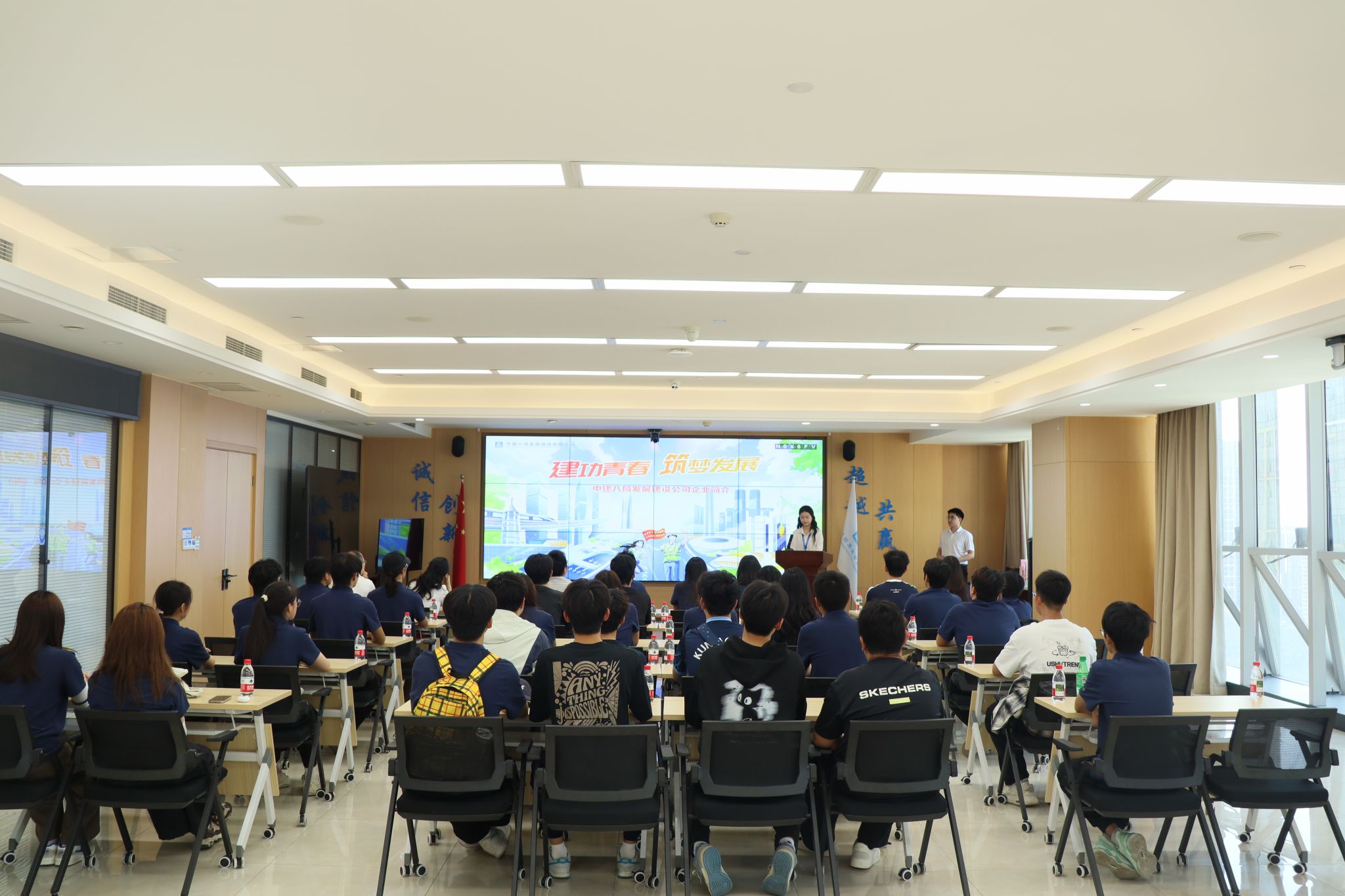 接着在讲解员的带领下,支部成员沉浸式地观看了公司的宣传片,并对企业发展沿革、所获荣誉、精品工程、工作环境、团队氛围等有了详细的了解。中建八局始终致力于打造行之有效、形式多样的先锋人才培养品牌,设置了蜜蜂计划、冲锋计划等详细的人才培养序列,从技术新兵到行业专家的进阶路线清晰可见,这种立体化培养模式也为支部成员指明了职业发展方向。
