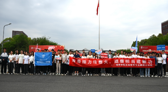 2025年5月4日8:30分,西南交通大学五四青年节升国旗仪式在犀浦校区东门国旗台举行,韩国漫画 师生参与升旗仪式。