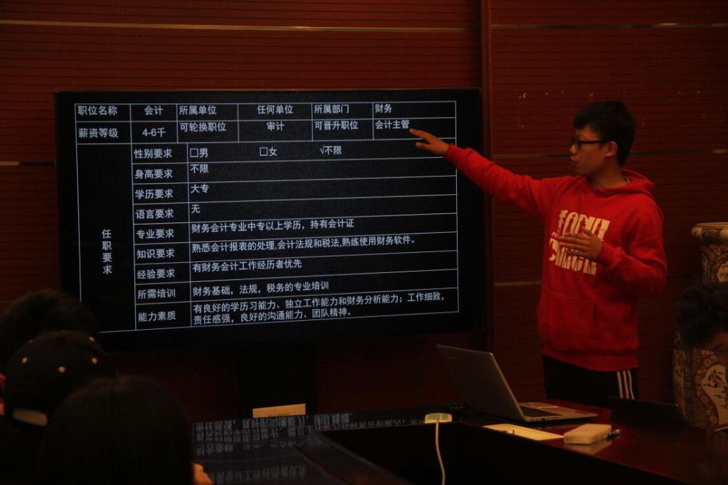 会上,分别由获得职场调研优秀的作者分享调研资讯,他们是谢常扬、包展鹏、彭勇杰、冷羽、王潇雪。介绍内容涵盖了:任职要求、工作条件、沟通关系、工作范围等几个大方面,同时对各自对应的职业中身高、学历、知识、经验的要求做出了详细说明;调研各行业具体岗位的准入门槛、实际工作内容、福利待遇、后期发展等,还原某职业真实情况,帮助同学们正确判断职场现状,降低学生就业后的心理落差,也可以积累职业指导资料,为“职业世界探索教育提供素材。