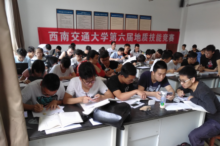5月25日下午两时,西南交通大学地球科学与环境工程学院于X4218——地质实验室,举办西南交通大学第6届地质技能竞赛。本次比赛由覃礼貌,刘园园,王世明老师指导,竞赛限时4小时,共有12支队伍积极报名参加了竞赛。竞赛内容主要包括,地质标本技能竞赛与地质制图技能竞赛两个项目。比赛正式开始前,覃礼貌与刘园园宣读了比赛内容及相关规则,各参赛人员认真听取后,比赛正式开始。