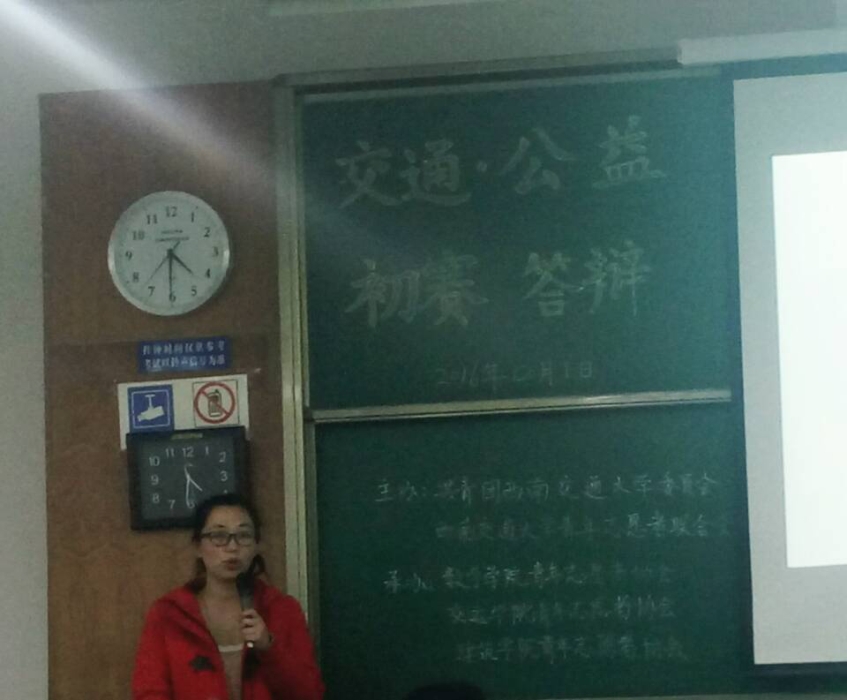 12月1日下午4点,由环境二班团支部中参与团日活动的7名成员参加此次“交通·公益”团日活动答辩初赛。