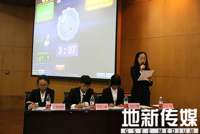 依次经历了正反方四辩公论陈词,正反方申辩,二辩对辩等紧张激烈的环节后,便进入了全场比赛最为激烈的自由辩论环节。双方辩手均对己方的观点进行了进一步的阐述和完善并且一次次地指出对方的纰漏之处。双方唇枪舌剑,你来我往,不断地引用名人事例和名人名言,试图找到突破口,一举击败对方。