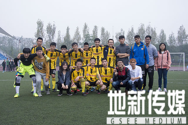 刚下过雨的天空灰蒙蒙的,绿茵也是湿漉漉的,然而队员们满怀的激情点燃了观众们的心。此次决赛,白队虽无缘冠军,但通过比赛加强队员们团结合作的精神,展现昂扬向上的精神风貌。下午6点整,比赛结束,队员们欢呼拥抱,合影留恋,至此2016级新生杯足球赛完美落幕。