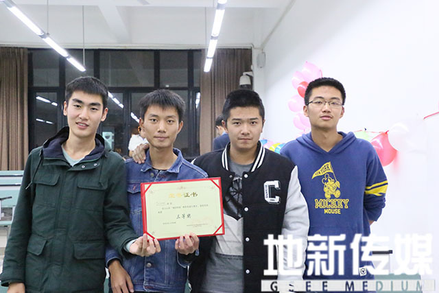 比赛结束后,T016013、T016007、016006、016061四个寝室获得了优胜奖,T102024、T102017、T016046三个寝室获得三等奖,T103036、T102028两个寝室获得二等奖, T102034荣获一等奖。孙彦文老师,李婧老师,翟琦老师分别为获奖寝室代表颁奖并且合照留念。