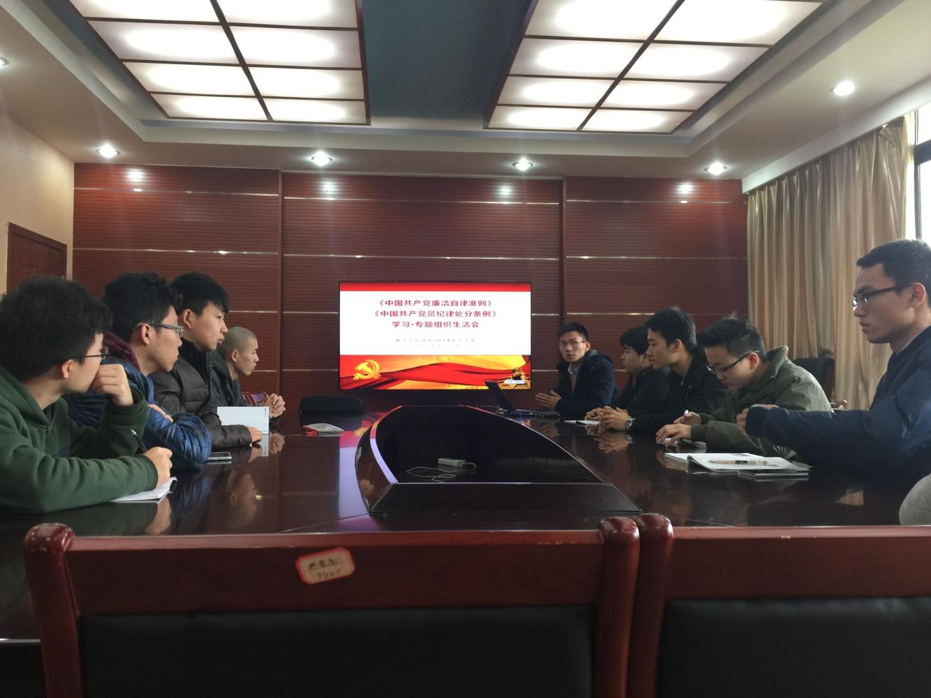 本科14级党支部在4531会议室组织召开学习《中国共产党廉洁自律准则》》(以下简称《准则》)、《中国共产党纪律处分条例》(以下简称《条例》)专题组织生活会,支部书记杨都强老师主持主持会议,本科14级全体党员、预备党员参加了此次会议。