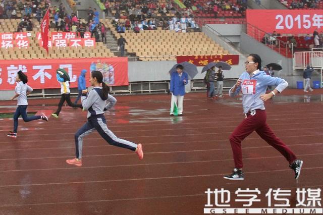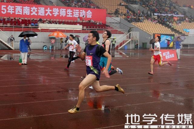 首先是男子100米的比赛。一声枪响,运动健儿们健步如飞。领先者还在努力向前冲以拉开距离,而落后者也在努力追赶。他们体现出了自强不息的体育运动精神:奋勇争先,超越自我。一步步的跨越,是对向上的生命最真实的诠释,汗水和雨相伴,早已分不清彼此。而他们,昂扬向上,跨向终点。紧接着进行的是女生100米的比赛。雨中的她们,并没有显得那样娇弱。巾帼不让须眉,上场不输男生。女生中不乏运动健将,她们总是能脱颖而出,并且毫不逊色于男生。