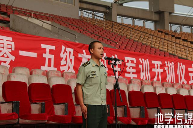 首先,武警四川总队成都市支队四大队教导员、军训团团长李少校为全体受训学生做开训讲话。他向负责本次军训的教职员工表示感谢,而后指出,军训是高校生活的必修课,同学们应当努力提升、完善自我,同时具有坚忍不拔、迎难而上的精神,理解配合教官。紧接着,他宣布西南交通大学2015级新生军训正式开始。