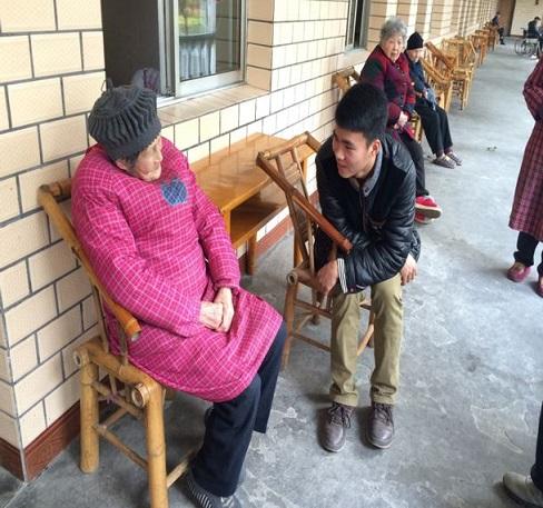在我们正前方的是一个院子,在门的右手旁是几栋住宿楼,老人们就住在里面。当我们到达时,有几位老人在园中散步。通过交谈,老人告诉了我们他们的情况,大多是因为子女工作在外比较忙,没时间照顾他们,他们才被送到这里,也有的是无儿无女,孤独一身地生活。他们中有的是军人,有的曾经是教师,落寞的眼神、被岁月碾过的沧桑脸庞、驼掉的脊背让我们的心不禁地揪紧。养老院中还有数位年龄高达99岁的老人,他们都已行动不便,吃穿住行都需要护理人员服侍。