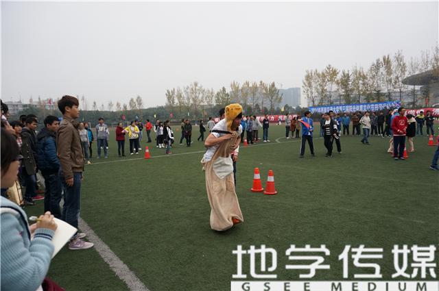 11月16日上午10:50,趣味运动会项目——“袋鼠运瓜”在北区体育场举行。虽然天下着小雨,但却丝毫浇不熄同学们的热情。