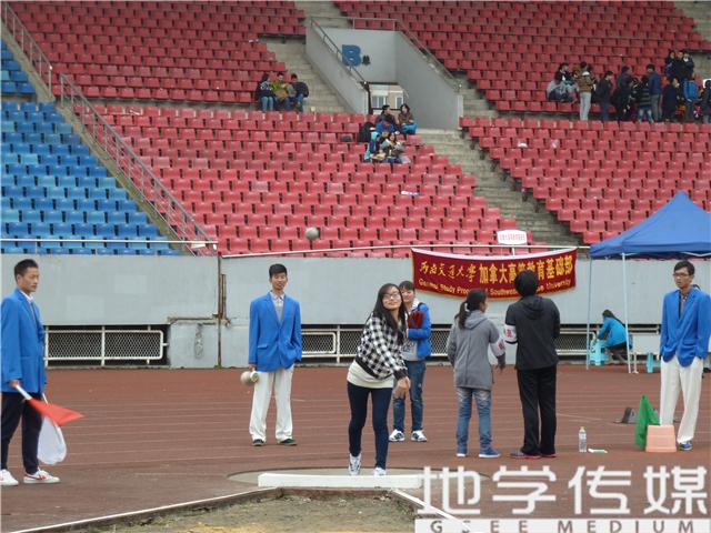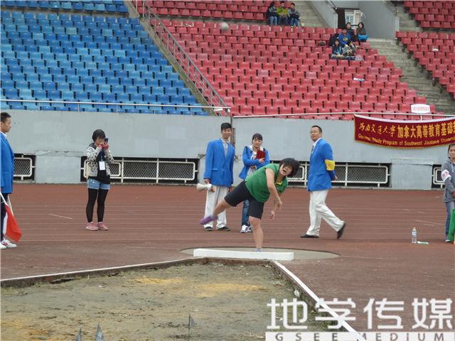 11月16日,西南交通大学第三届阳光体育文化节田径运动会进行到第二天。北区运动场内,同学们仍然热情高涨,运动健儿们努力拼搏,观众们加油助威。14时,随着裁判的一声哨声,学生甲组女子铅球决赛正式开始。