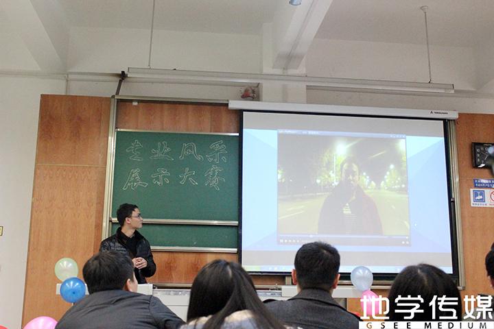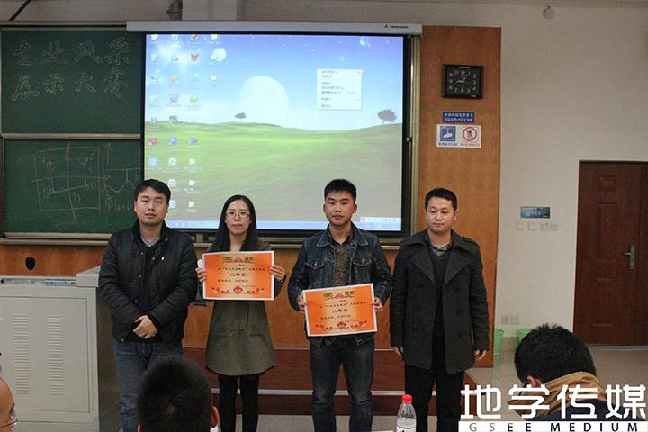 布置精美的会场座无虚席,主持人的简单赛事介绍之后,专业风采展示正式开始。按照地质组、测绘(含遥感)组和环境(含消防)组的出场顺序,共计8个小组参加了专业风采展示大赛,每组历时约8分钟。地质一组的展示先声夺人,地质二组的内容详实充分,测绘一组的图片幽默风趣,测绘二组的视频让人热血沸腾,测绘三组配有现场板书示意,环境(含消防)3个组也各有特色,或采用图文并茂的聊天式,或配以轻松悦耳的背景音乐,抑或滔滔不绝的精彩讲解富与提问式互动。各小组分别借助ppt、prezi、iebook的形式展示,并辅以视频、动画,丰富多样;展示的内容围绕本专业学科特点、专业在西南交大的现状和发展以及专业的就业情况等方面展开,侧重凸显地球科学与环境工程学院各专业的特点和特色,精彩纷呈。