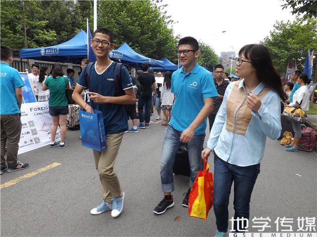 八点开始,新生就陆陆续续过来报道了。地新传媒和团委组织部的成员驻扎在迎新点为大家进行报道手续办理。他们为新生耐心地讲解报道流程,满脸笑容表示对大家的热烈欢迎。更是有党团服务队和各班的志愿者为跋涉而来新生及家长送上一杯杯饮用水。