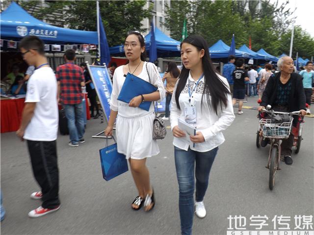 迎新过程中,地学传媒中心是一支特殊的队伍,他们除了肩负着采访新生、家长和老师,报道迎新的动态和进展之外,还热情积极地引导新生,为他们答疑解惑。新闻部的记者一手拿笔记本和笔,一手帮助新生提东西;摄影部的记者脖子上挂着单反相机,拍完照就引导新生办理入住手续,补缴费用等等。他们边走边聊,跟新生讲解交大的概况,生活注意事项,接下来几天学院的时间安排等等,同时也让他们谈了谈来学校的感受,对心理上的一些困惑进行了疏导。并且跟家长也进行了简单的沟通。传媒主席龚心瑀也毫无架子,来到迎新现场帮助新生提行李,引导手续办理。