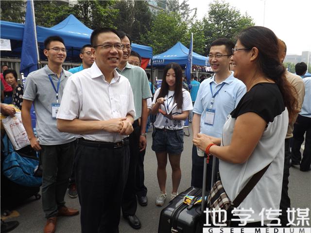 最后,徐校长转过身去,问一个带孩子过来报道的家长:“您的孩子考上西南交大,您觉得地球科学与环境工程学院怎么样呢?”