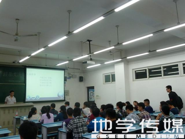 在主持人简单的开场白之后,交流会正式开始。首先与大家分享经验的是来自环境工程专业的贺雷学长,他以386分的高分成功考入了厦门大学。在与学弟学妹们分享经验的过程中,贺雷学长强调心态一定要好,只要自己扎扎实实去复习,这就足够了,不用刻意地和别人去比进度,比复习的时间,在保证复习效率的同时也要保证其质量,随后贺学长关于怎样合理安排复习的时间给同学们提出了自己宝贵的意见。