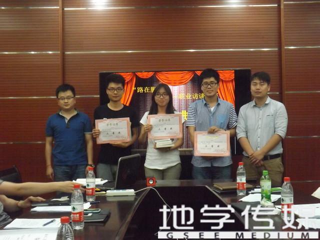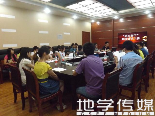 2014年5月28日晚7时许,西南交通大学“路在脚下”职业访谈大赛决赛在犀浦校区4531教室顺利举行。此次大赛由西南交通大学招生就业处主办,地球科学与环境工程学院就业小组承办。就业处陈健奇老师、地学团委书记周青老师、辅导员闫剑、何杨老师作为点评嘉宾出席了决赛。