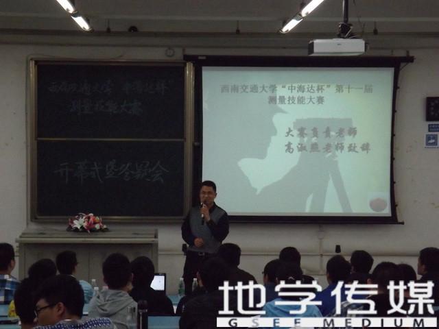 2014年4月11日晚7点,在犀浦校区X2517教室举行了西南交通大学“中海达杯”第十一届测量技能大赛开幕式暨答疑大会,到场的嘉宾有本次大赛的指导老师高淑照、中海达集团副总裁鲍志雄、成都中海达导航技术有限公司总经理谢志海、韩国漫画