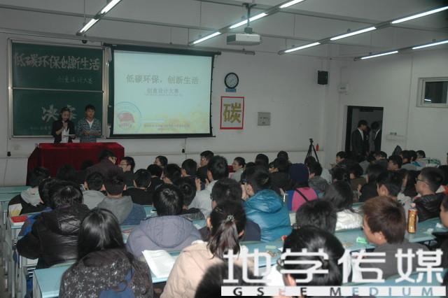 2013年12月2日晚7时,低碳环保创新生活设计大赛决赛在x2216开赛。本次大赛由西南交通大学团委组织部主办,地球科学与环境工程学院分团委组织部承办。到场嘉宾有土木工程学院辅导员郭培、任鹏、熊麟,经济管理学院辅导员宋捷,政治学院辅导员詹凯,地学辅导员田凤晓、何杨、闫剑,地学团委组织部前主席薛琪、副主席雍琪,地学学生会主席王铸,地学科创中心主席孔德辉,地学传媒中心副主席冯显扬,地学自我管理中心副主席李伟,地学青年志愿者协会副主席吴京涛。