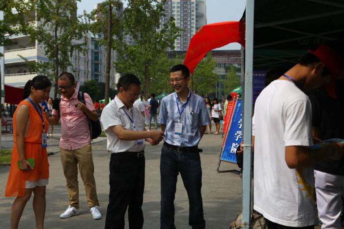 党委副书记傅尤刚老师亲自到达迎新现场进行迎新工作的视察和安排。