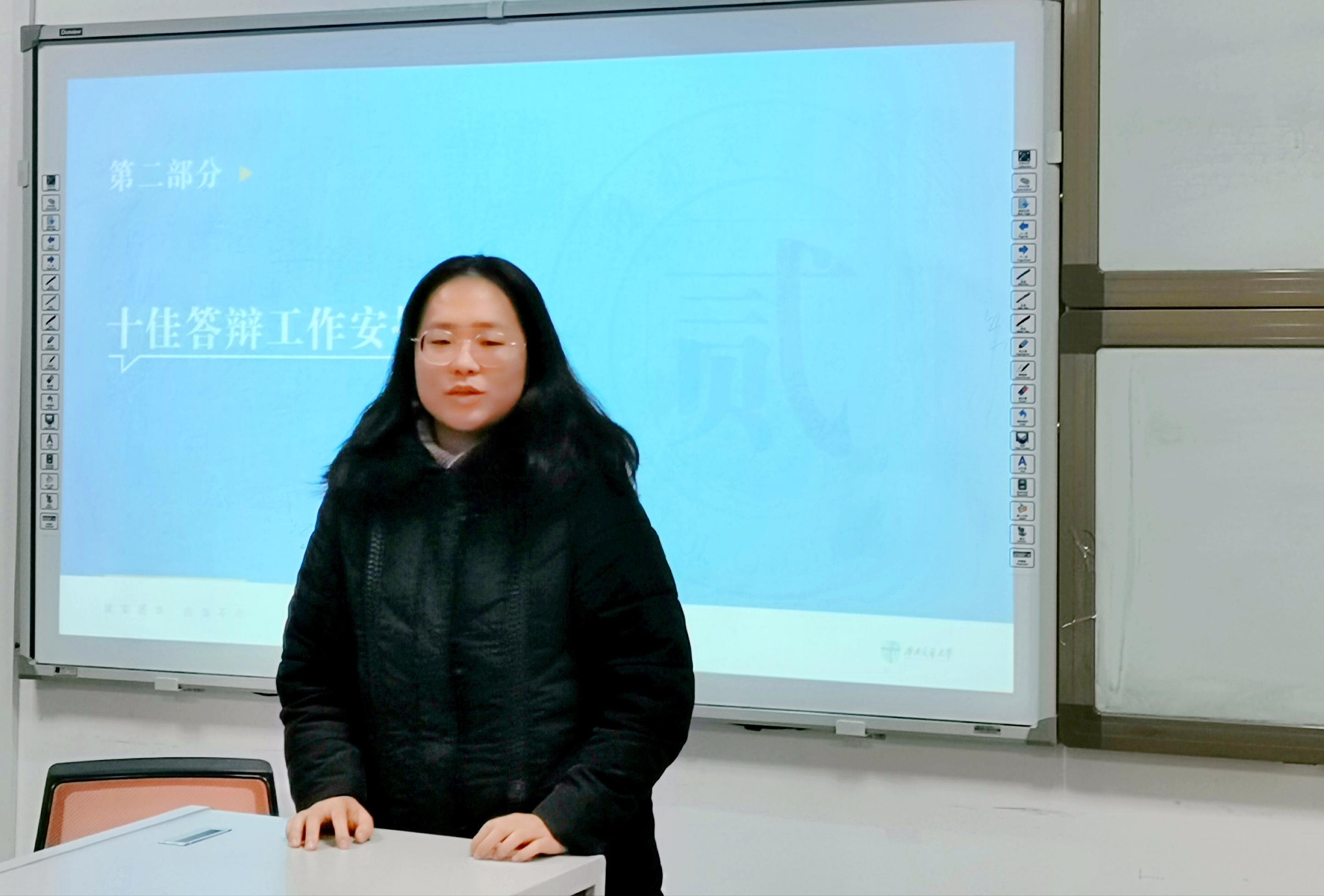 而后指导老师董可对各部门工作表示赞扬,并对接下来的十佳答辩工作做出鼓励。也对同学们的学习方面做出提醒,强调学习才是首要任务。