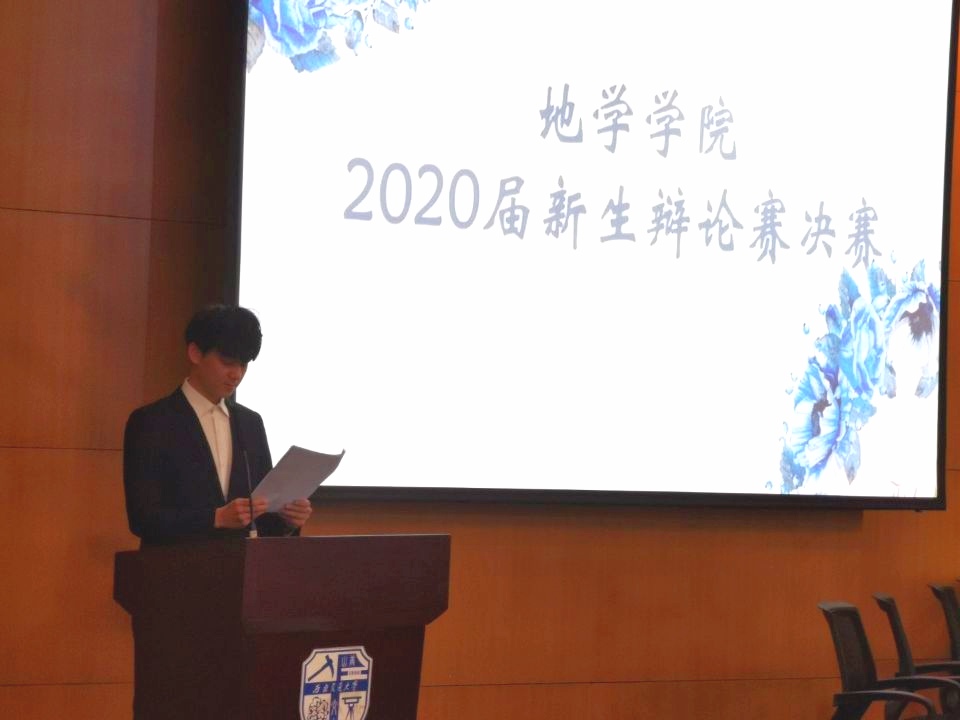 在图书馆一号报告厅举办了新生辩论赛决赛。19:30整,主持人先介绍了到场嘉宾及评委,随后由新生辅导员郑文娇老师对本次比赛致辞。在播放了此次比赛的宣传视频后,地球科学与环境工程学院新生杯辩论赛决赛正式开始。