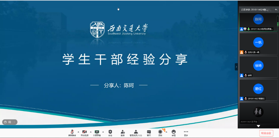 此次分享会邀请到了竢实扬华奖获得者徐琦同学,国奖获得者杨碧红同学和地学青协会长陈珂为20级本科大一新生进行经验分享。其目的是为了强化,“大抓思想政治引领的政治责任,全面深化青年思想政治引领,推树先进典型引领青年,令学生们有更好的发展。