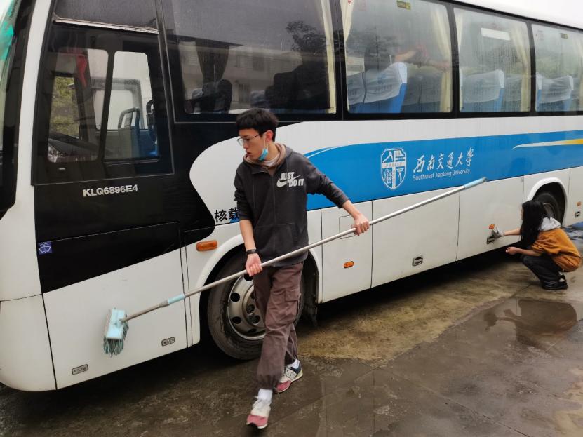 为了减轻校车站维护人员的工作压力,为校车驾驶员以及乘坐校车的同学们提供一个更好的环境,3月14日清晨七点四十,西南交通大学地学青协志愿者共十六人利用周末的空闲时间,带上清洁工具在北区校车站集合,乘坐校车来到九里校区的校车停靠区提供了清洗校车的志愿服务。