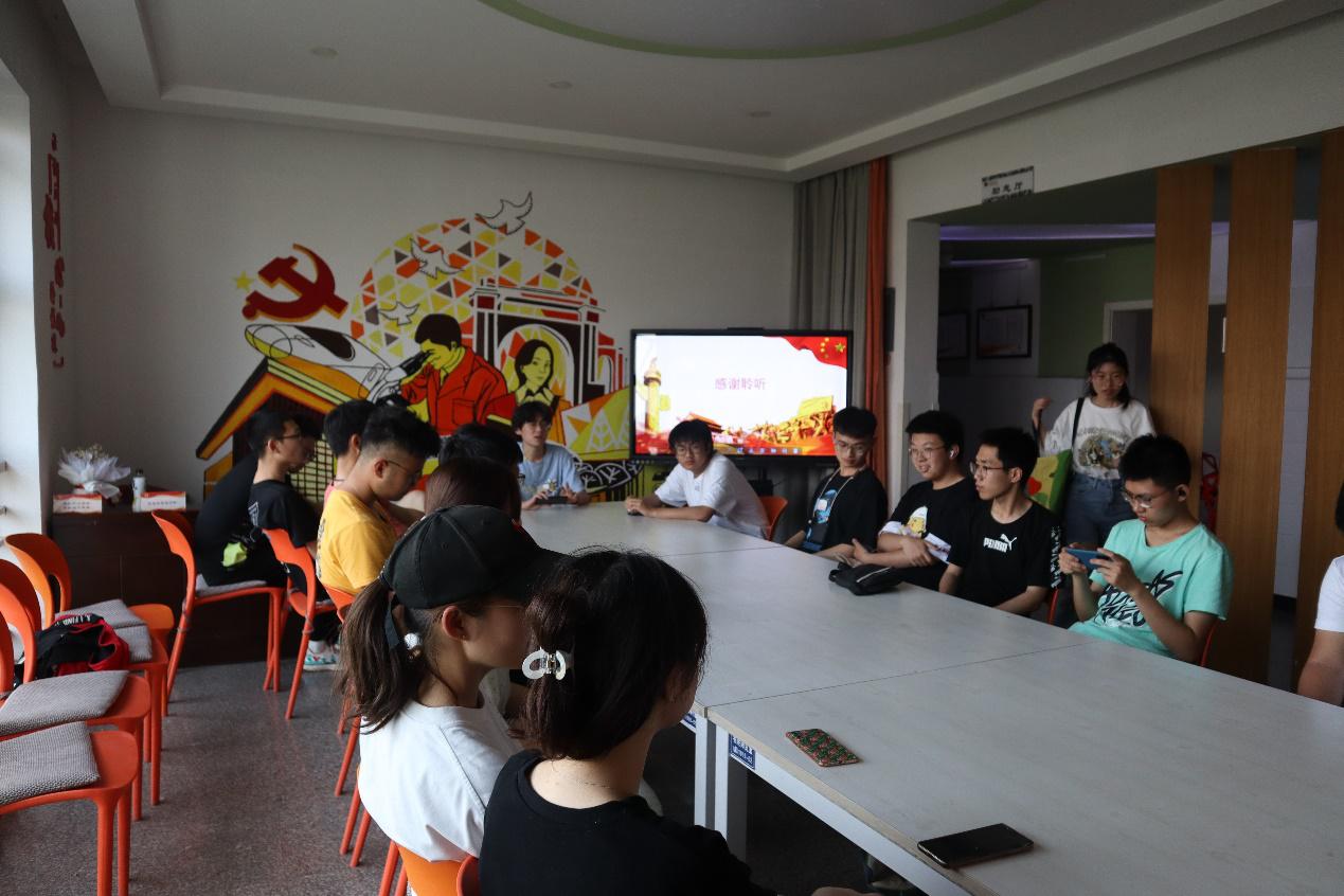 首先吴佳朔同学通过视频录像,向同学提问的方式回顾党的历史。在观看录像时同学们专注投入,回答问题时积极踊跃。吴佳朔同学又对党的初心,努力方向进行进一步讲解。同学们也提出自己在某些问题上的疑惑,一人提问,大家解答,极大地提高了学习氛围。