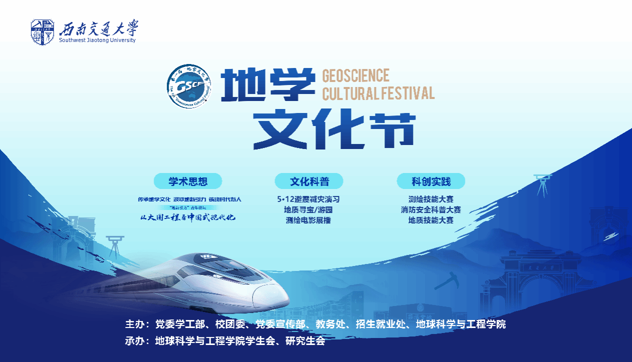 测绘书经纬,地质孕温润,消防解困厄……地球科学工作以天地为己任,山川作课堂,揭宇宙之奥秘,探地下之宝藏,为人类谋福祉,助国家变富强,是无限崇高,无比豪迈的事业。为充分发挥学校轨道交通相关学科优势和学院地球科学学科特色,在深入探索地球科学的同时,弘扬地学文化,增强青年一代对地学文化的思想、情感、价值认同,在全校范围内举办第一届“地学文化节”,具体活动介绍如下: