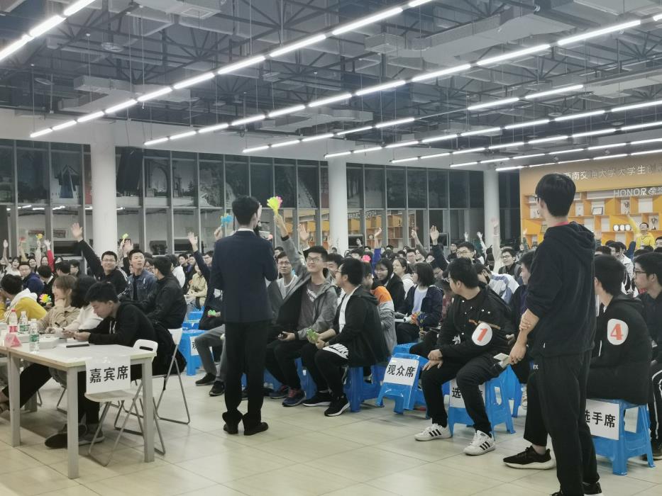 学生会指导老师李国欣,电气学院学生会指导老师孙检,经管学院学生会指导老师薄慧,校学生会副主席付忻和多个兄弟学院的学生会主席。在八位选手自我介绍之后,比赛正式开始。