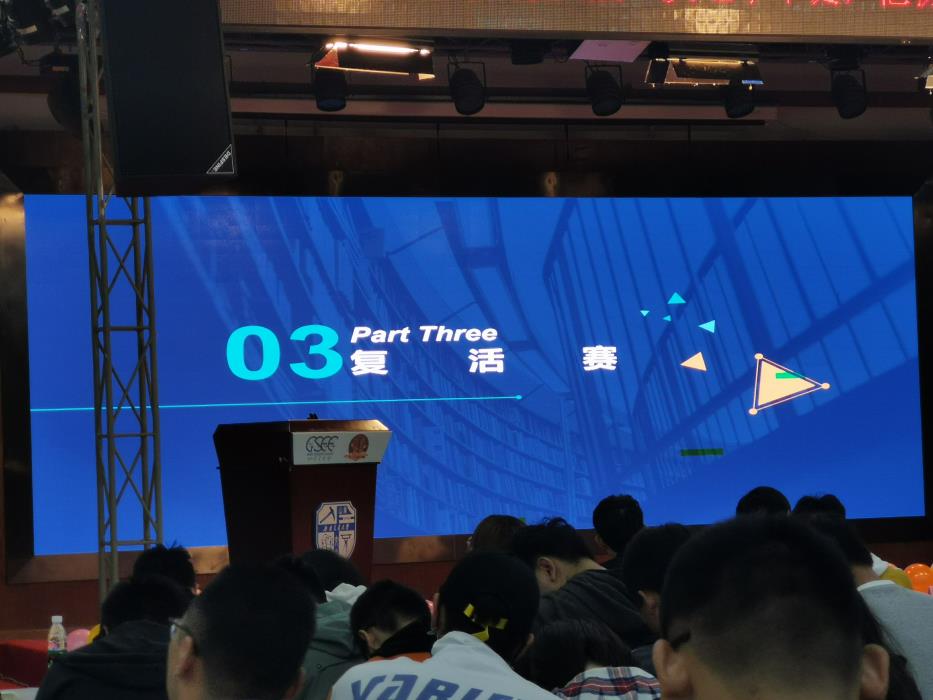 随后就到了相对精彩的淘汰赛阶段,根据复赛第一轮小组成员分数之和排序,选出擂主队。擂主队选择一组为打擂队,两队轮流答题,每队各有两次跳过机会。然后由胜出队伍挑选新的擂主,进行第二次擂台赛。本轮比赛共淘汰两组队员。淘汰赛中,第三组对阵第四组,第一组对阵第二组,经过紧张刺激的比拼,第三组和第一组取得了暂时的胜利。