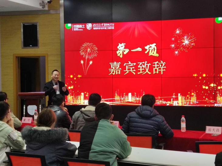 11月22日18:00,于X4243举行比赛闭幕式暨颁奖典礼。成都四海岩土工程有限公司岳大昌、徐艺、朱维新、廖必成、李骏,西南交通大学地球科学与环境工程学院地质工程系副系主任张志厚老师、雷治红老师、马宁老师,地球科学与环境工程学院辅导员董可老师及各组参赛选手参会。