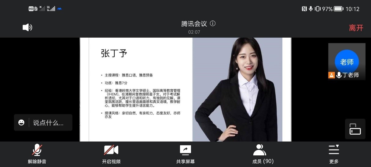 最后的线上讨论环节,同学们在听完张丁予老师的讲解后,展开了关于留学材料准备的讨论。同学们积极地向老师请教相关问题,张老师也耐心地为同学们解答。