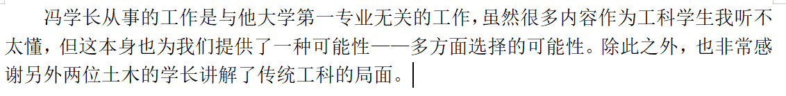然后,熊强学长着重讲解了毕业生参加招聘会面试的注意事项,传授同学们编辑简历的技巧和面试准备重点。此外,学长建议同学们做一份心理性格调研,认清自己,了解到自己性格适合的工作。之后张鹏学长也向我们讲解了工程岗位的具体工作感受和自己的一些亲身经历,强调实习的重要性。学长们都对同学们未来的就业怀着满心祝福。