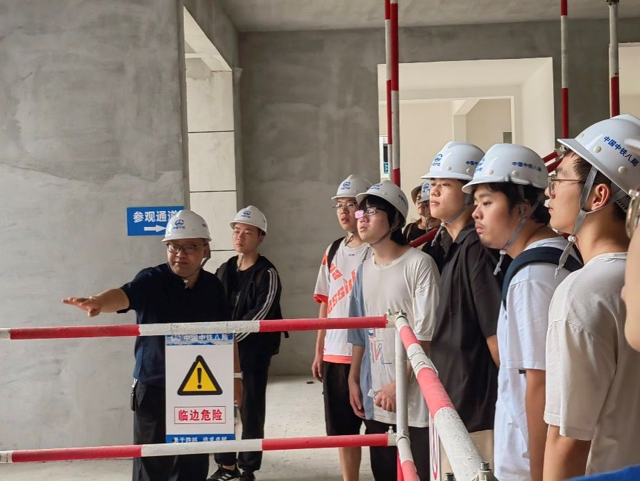 辅导员梁爽带队陪同,中铁八局建筑公司人力资源部副部长凡强、中铁八局大北项目部项目书记钟时亮、项目经理陈兆伟、工程部部长王森及相关工作人员接待参观。