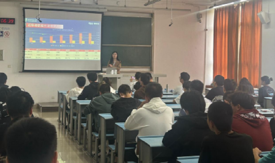 会议伊始,周巧怡老师以“双手准备,多个未来”入题,进行了考研保研形式分析,通过分析近年来考研报名录取情况柱状图和折线图以及2023届本科生境内升学数据,对同学们的专业成绩提出了要求,同时讲述了对于不同国家当前留学的优劣情况和经济需求进行分析。这让大家对于未来学术路的选择更加了解也便于同学们明确方向。