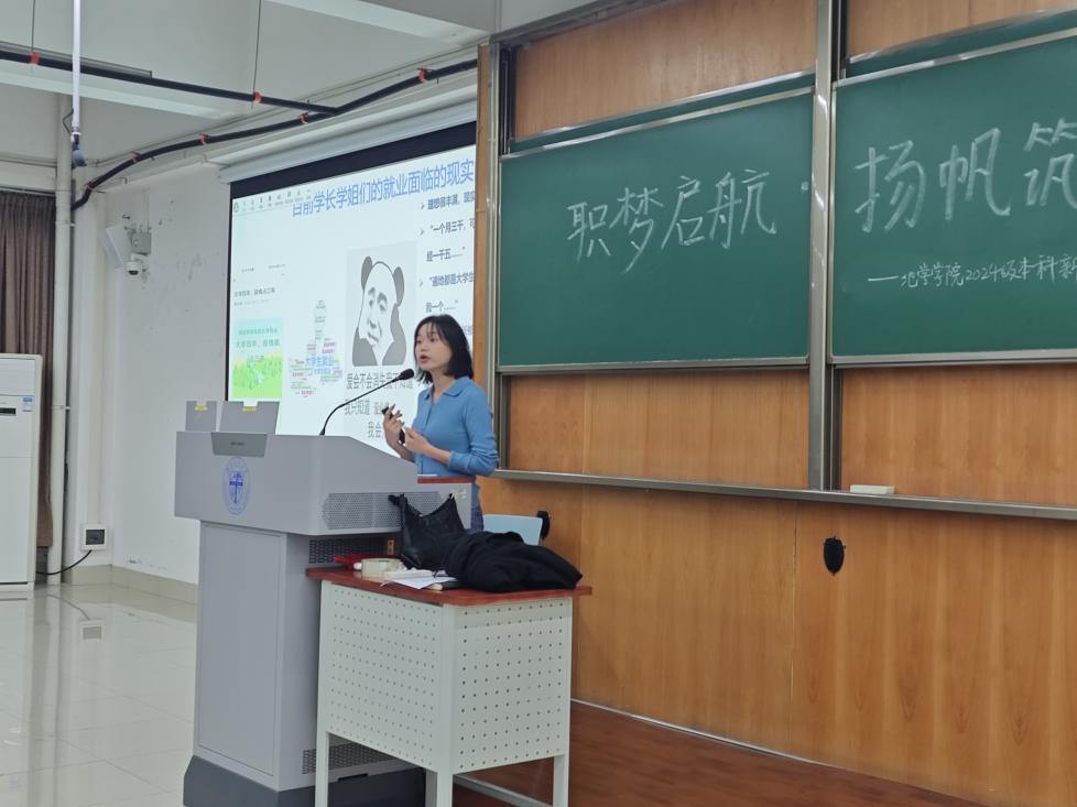 举办了以“职路启航,扬帆筑梦”为主题的职业生涯规划讲座。此次讲座特邀西南交通大学中级生涯导师樊芝菱老师主讲,内容涵盖就业形势分析、考研选择、大学生涯规划等多个方面。