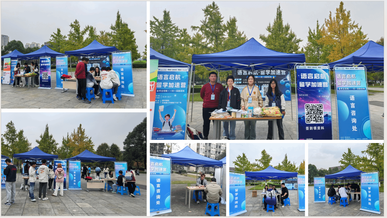 就业指导中心携手新东方国际教育,精心策划并成功举办了“语言启航·留学加速营”系列活动。活动分别在犀浦校区图书馆外、天佑斋15号楼前下沉广场(11月6日至11月7日)以及九里校区一食堂旁(11月28日周四)举行,吸引了18个学院的100余名同学积极参与。