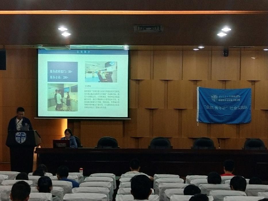 接着是王肖毅同学向大家介绍了本次企业访谈的对象:“金海星科技有限公司”。金海星科技有限公司引领交通主动安全智能防控开发研究,为交通运动企业提供安全保障,并讲述了如何坚持引领交通主动安全智能开发研究,为交通运输企业提供安全保障的战略目标。