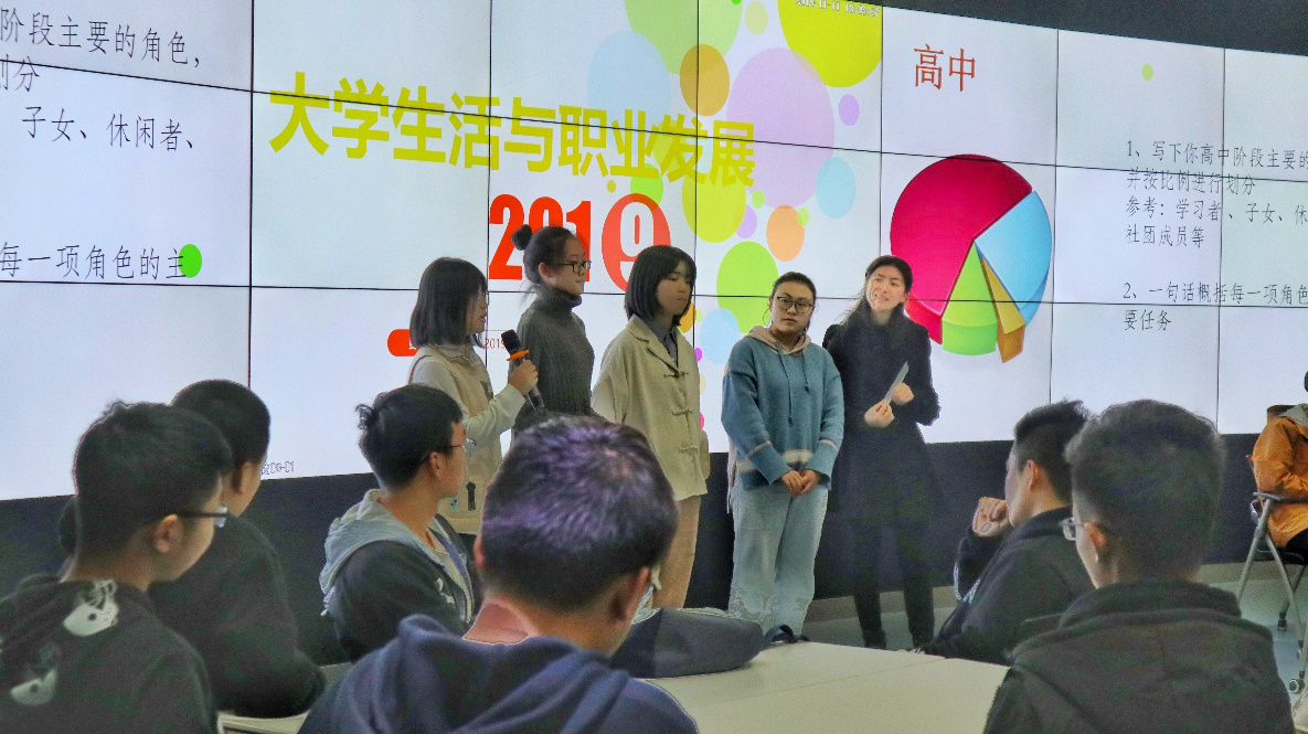首先,彭老师引导大家思考高中阶段和大学阶段不同方面的不同之处,以此引发大家对自己人生规划的思考。同学们在彭老师的鼓励下逐渐进入状态,积极的分享自己的见解。“作为子女,远在他乡,父母肯定担心,我的父母不擅长表达,我要经常向他们分享自己的生活”、“大学生最重要的还是学习,作为学习者,我们的追求不应止步于不挂科”……同学们认识到,大学期间每个人都需要承扮各种各样精彩又重要的角色,要协调好不同角色,需要我们明确角色定位、学着管理好自己,使自己的生活牢牢掌握在自己的手中。做对自己未来负责的大学生,需要逐渐明确、建立的职业规划与目标,并向着目标努力。