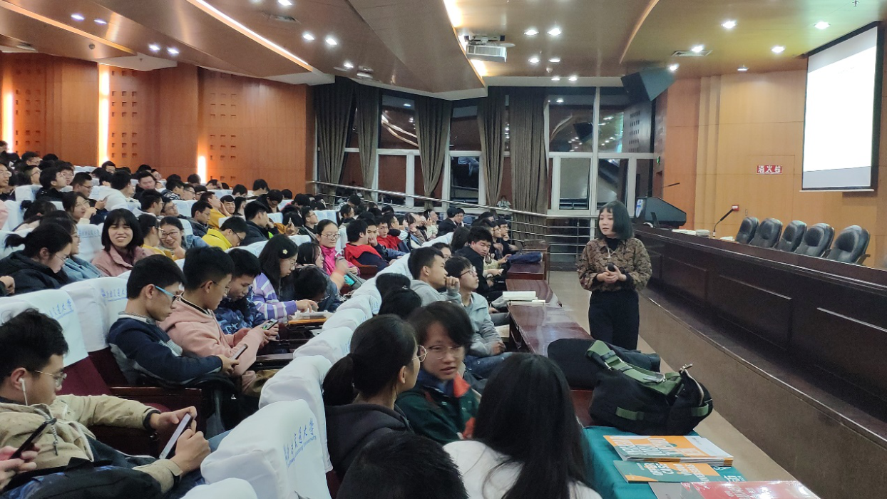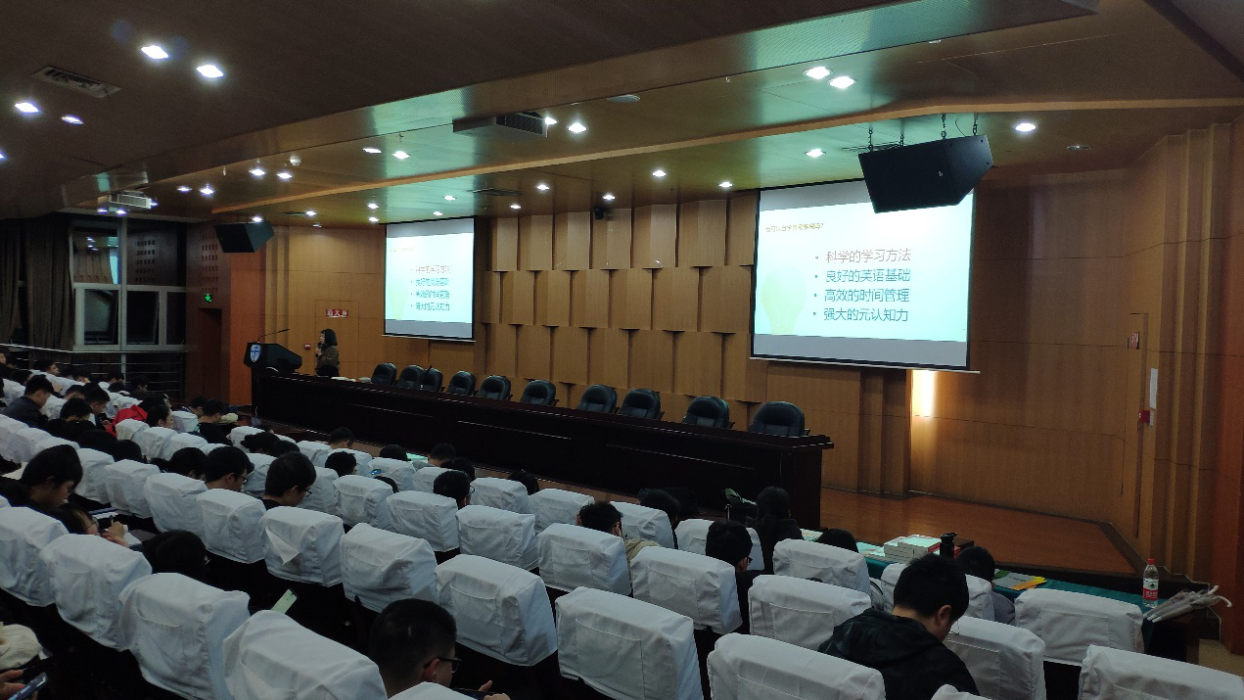 2019年11月19日晚上19:00,地球科学与环境工程学院邀请成都新东方机构在图书馆二号报告厅举办了新东方留学与语言学习讲座,本次活动的主讲人是新东方名师曾煜智老师和王峥璇老师。两位老师分别从升学、深造工作以及语言考试备考攻略两个方面为同学们进行讲解。