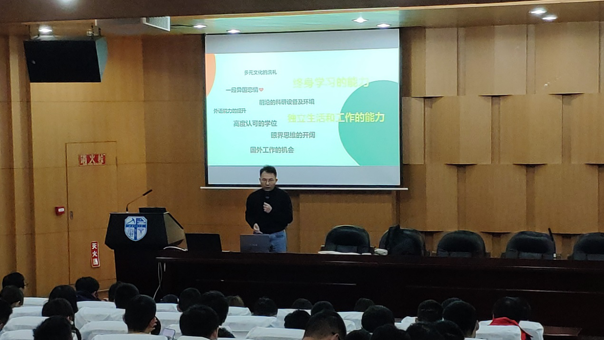 首先,曾煜智老师为同学们就升学、深造工作进行讲解。第一阶段,曾老师为学生强调出国深造的必要性。近年来,深造人数越来越多,西南交通大学就业数据显示,2019届毕业生约28%的同学选择国内深造,4%的同学选择出国留学,这导致就业竞争越来越大。而数据显示,考研人数逐年增加,难度越来越大,因此出国留学相对于考研而言具备一定的优势。他强调,出国留学能够得到多元文化的交流平台,提升自身解决复杂问题的能力、判断力和决策力,时间规划能力,同时,国外教学大多是重科研、重实践,培养学生的实际操作能力,有助于学生适应企业的工作模式。
