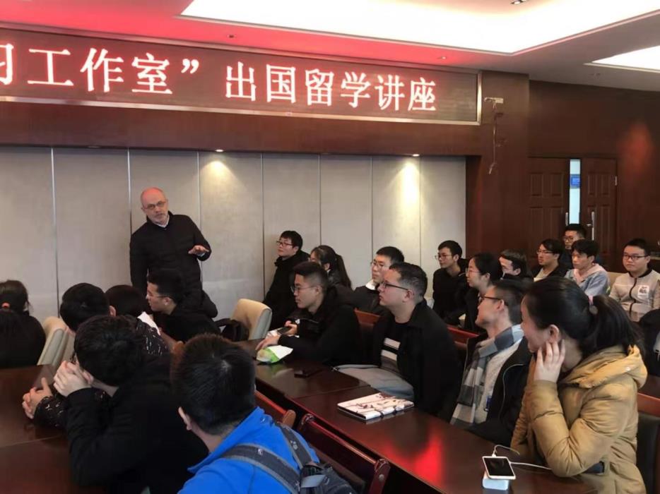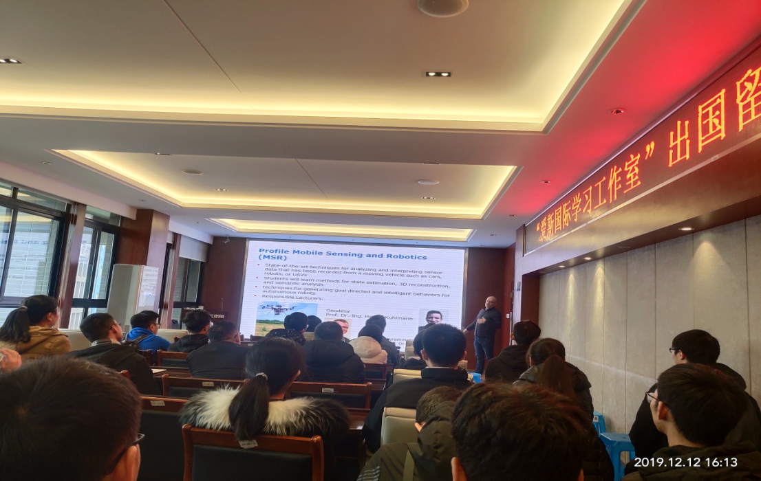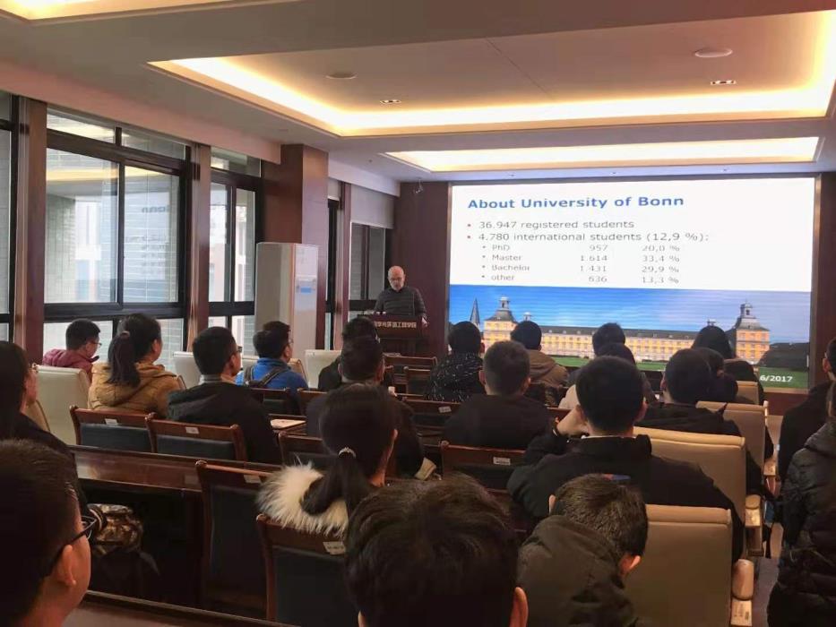 活动伊始,先由院长就波恩大学测绘专业的优秀教授、前沿的研究方向、学校在世界和欧洲的排名以及硕士的课程向大家进行展示。他提出,作为当代杰出大学生,我们必须时时刻刻追求更高层次的教育,他向大家介绍了申请该名额的条件,强烈鼓励大家用于尝试。