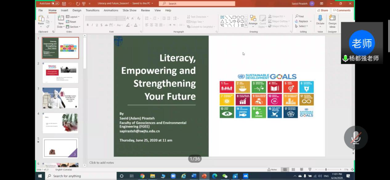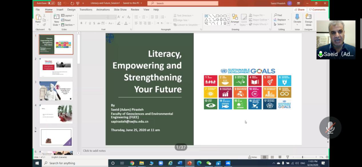 深造工作实效,学院就业指导工作中心邀请到Saeid(Adam)Pirasteh(博士,副教授)于6月25日上午11:00通过开展“国际化+名师讲堂”国际视野与出国留学系列讲座第五期,会议由杨都强老师主持。