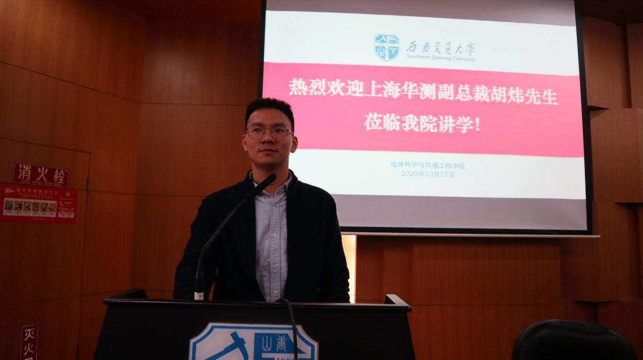2020年10月14日10时,地球科学与环境工程学院于犀浦校区图书馆二号报告厅举办“登顶珠峰”讲座,本次讲座由上海华测导航技术股份有限公司副总裁胡炜主讲,地球科学与环境工程学院党委副书记傅尤刚主持,地学就业指导中心协助举办。