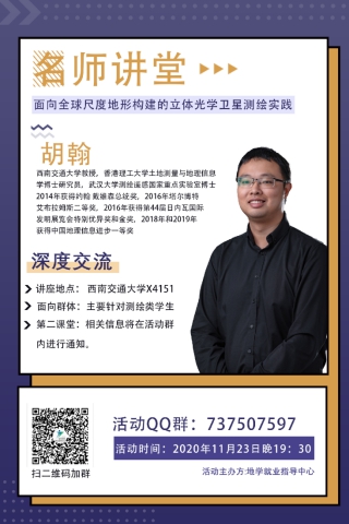 主讲人简介:西南交通大学教授。2015年至2019年期间担任香港理工大学的博士后研究员。2006至2010年在武汉大学遥感与信息工程学院攻读摄影测量与遥感专业。信息工程专业学习了四年后,于2010年至2015年在信息工程国家测绘与遥感国家重点实验室获得博士学位。2011年至2013年担任香港理工大学土地测量与地理信息学研究助理。