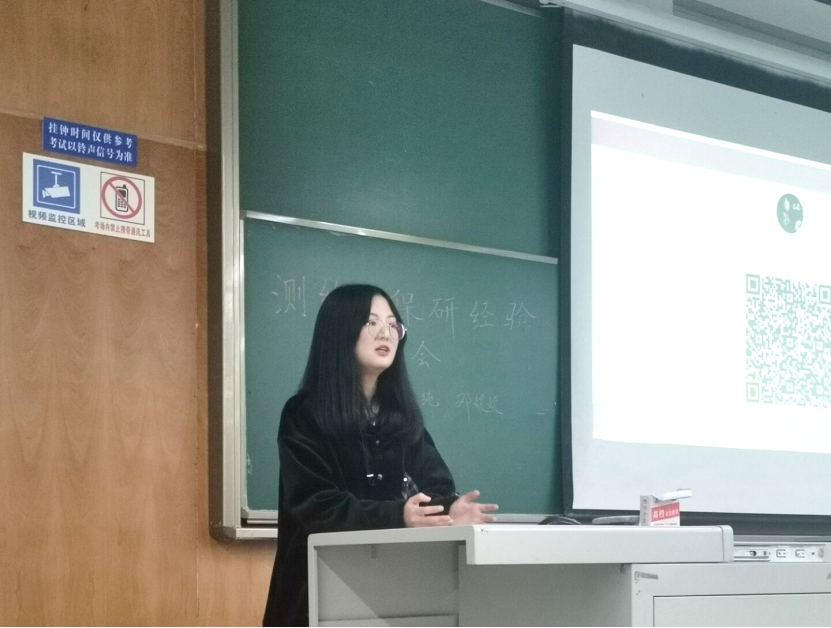 随后,邓媛媛为同学们介绍了夏令营、“预免推”和“九推”三种保研免推的形式及其基本条件、要求、注意事项等。接着,她着重介绍了保研的准备工作与流程,并和同学们分享了自己之前做保研准备时所遇到过的问题,让同学们对保研的相关事项有了新的认识。